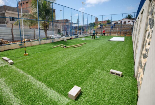 Prefeitura avança na implantação de campo de grama sintética na Praça Santa Bárbara
