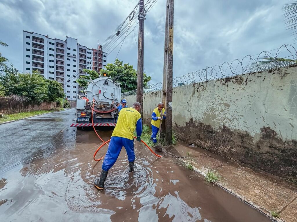 Nesta quarta-feira (22/4), as equipes de manutenção estão concentradas em serviços emergenciais e preventivos, como a remoção de uma árvore que caiu na Avenida José Leite, no bairro do Caji. Paralelamente, ocorrem desobstruções de redes e limpeza de caixas coletoras em diversos pontos considerados críticos.