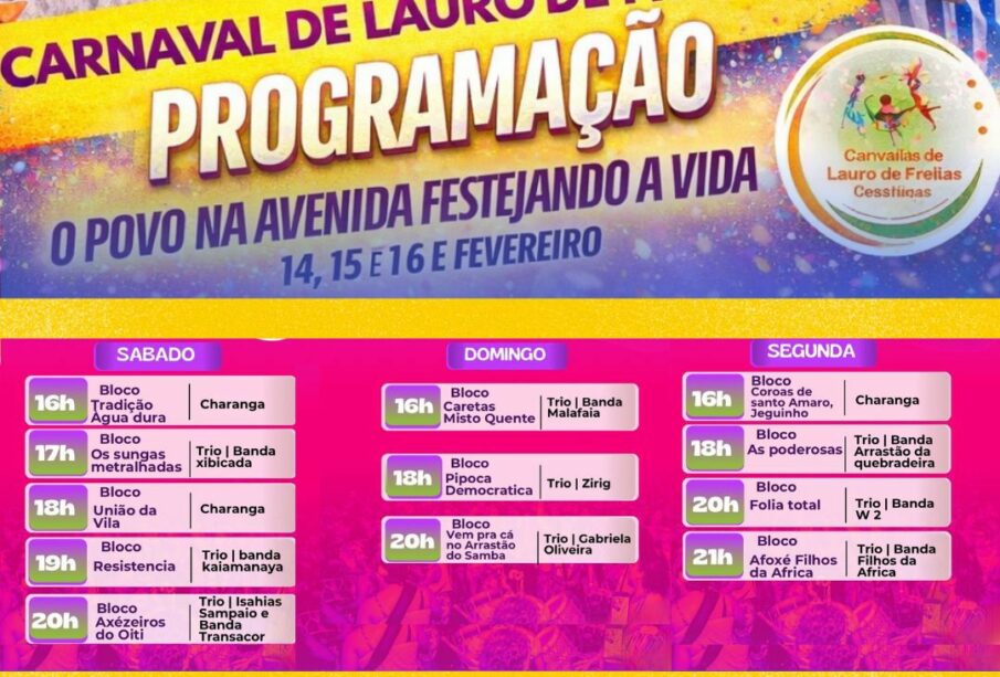 CARNAVAL NA CIDADE!Lauro Folia 2026 veja a programação