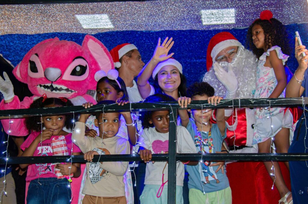 A ação, que contou com a presença especial da prefeita Débora Regis, marcou a noite de domingo com um cenário de encanto. Com Papai Noel e seus ajudantes a bordo, o trio musical percorreu as comunidades de Vila Praiana, Chafariz, Vila Mar, Lagoa dos Patos, Ipitanga, Lagoa da Base, Vilas do Atlântico, Miragem e Buraquinho, deixando um rastro de sorrisos e boas memórias pelo caminho.