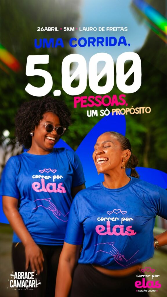 Promovida pelo Abrace Camaçari, com o apoio da Prefeitura Municipal de Lauro de Freitas, a iniciativa carrega um forte propósito social. A presidente da instituição, Renata, reforça o sentido do movimento ao destacar que a corrida nasce como um chamado coletivo para a causa: “é um movimento que a gente vem construindo com muito propósito, para fortalecer e cuidar das mulheres”.