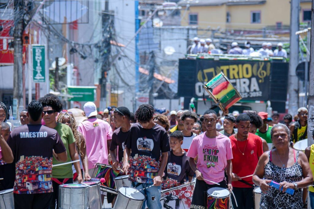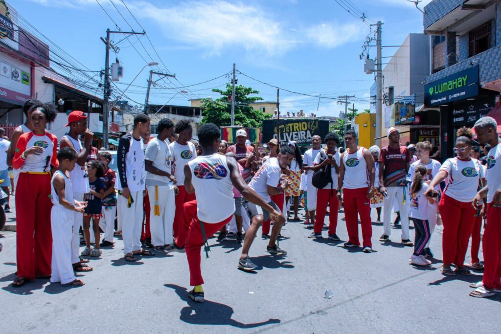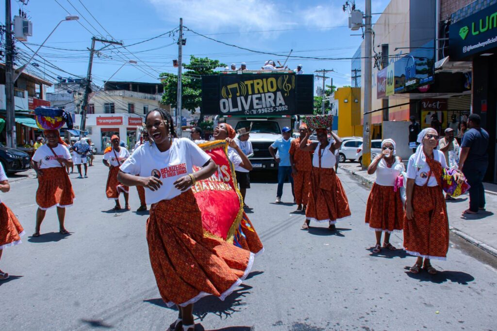 Com saída do final de linha do Centro, o cortejo realizado pela Prefeitura de Lauro de Freitas, por meio da Secretaria Municipal de Cultura, Lazer, Juventude e Esporte (SECULJE), contou com a participação de cerca de 20 grupos culturais, entre eles: capoeira, folclórico, percussão e dança, que levaram animação para quem participou da celebração.