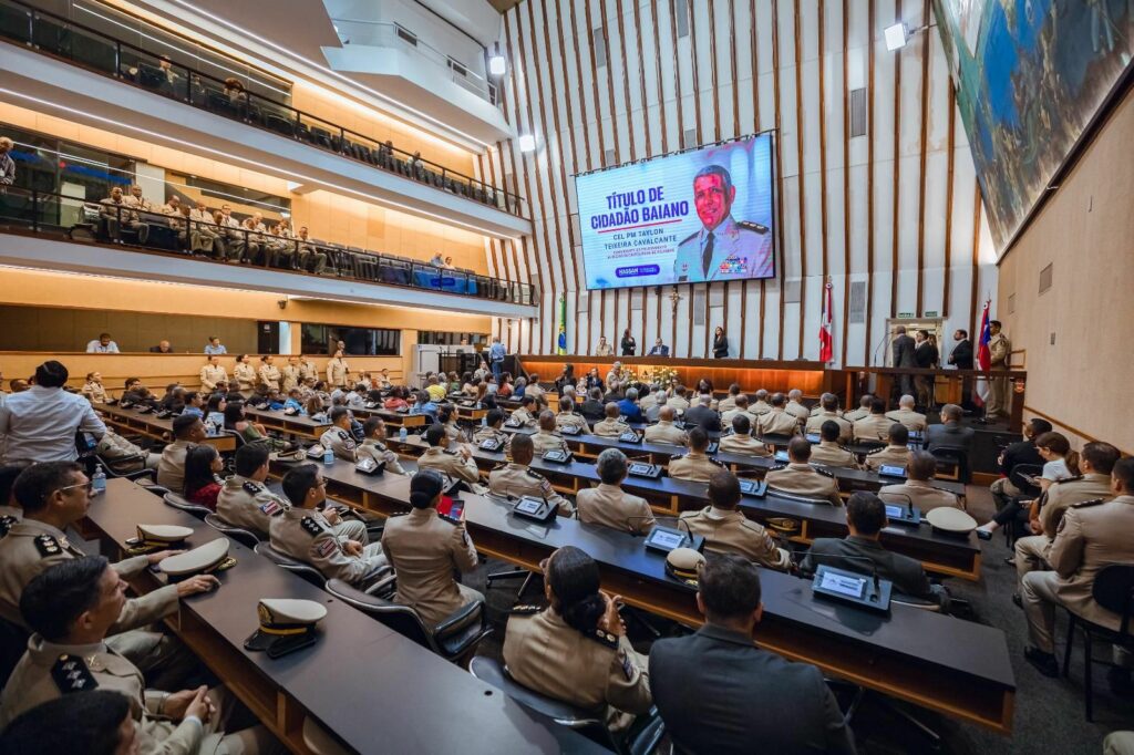 Em uma sessão solene realizada na Assembleia Legislativa da Bahia (ALBA) nesta segunda-feira (22/9), o Coronel Taylon Teixeira Cavalcante, comandante do Policiamento da Região Metropolitana de Salvador, foi agraciado com o título de Cidadão Baiano. A honraria, proposta pelo Deputado Hassan Andrade Iossef e aprovada por unanimidade, celebrou os mais de 36 anos de dedicação do oficial à Polícia Militar da Bahia (PMBA).