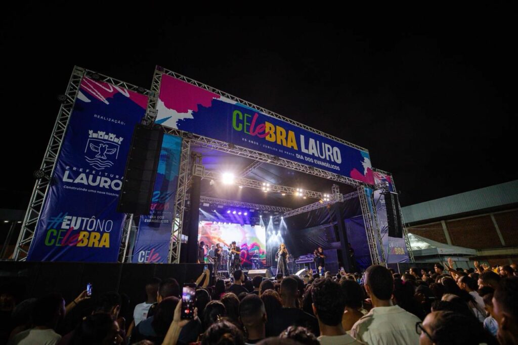 Uma noite marcada por emoção e fé foi vivenciada pelo público na primeira noite do maior evento gospel de Lauro de Freitas, o Celebra Lauro. Compartilhando desse sentimento, a prefeita Débora Regis, acompanhada do vice-prefeito e secretário municipal de Cultura, Lazer, Juventude e Esporte (SECULJE), celebrou a realização do evento e destacou a aceitação positiva do público.