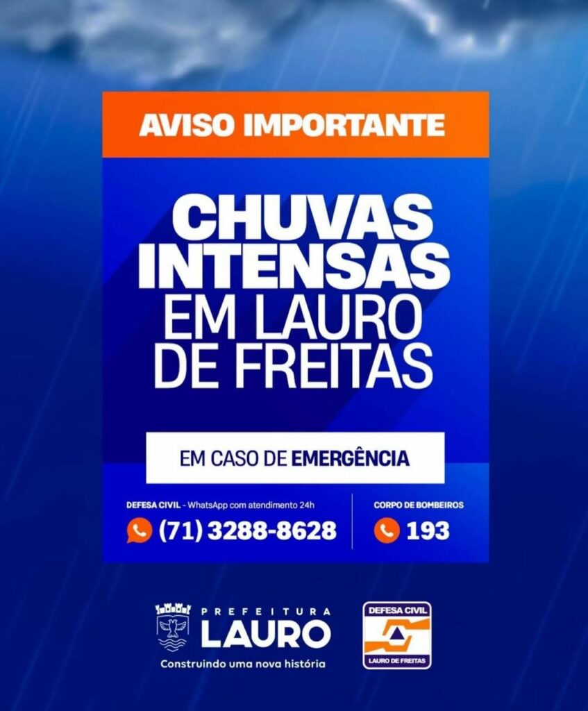 A recomendação é que a população redobre a atenção, evite transitar por áreas alagadas, encostas, locais com risco de deslizamento e proximidades de córregos. Em caso de emergência, a Defesa Civil pode ser acionada pelo WhatsApp: (71) 3288-8628.