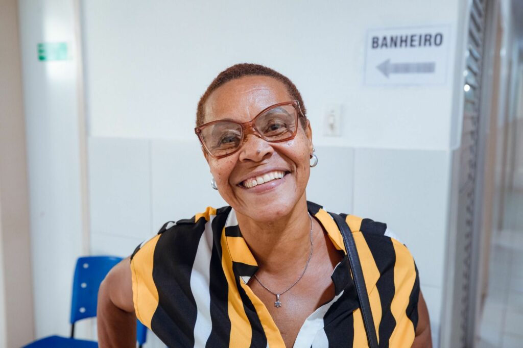 Já Valdelice de Oliveira, 59 anos, moradora da Itinga, também comemorou a troca da prótese antiga pela nova prótese de silicone. “Vim trocar minha prótese hoje pela de silicone. Gostei, o trabalho ficou perfeito, olha como estou linda, maravilhosa! Confortável, vai me ajudar na mastigação e aumentar a minha autoestima, né? Olha como fiquei mais bonita!”, afirmou empolgada.