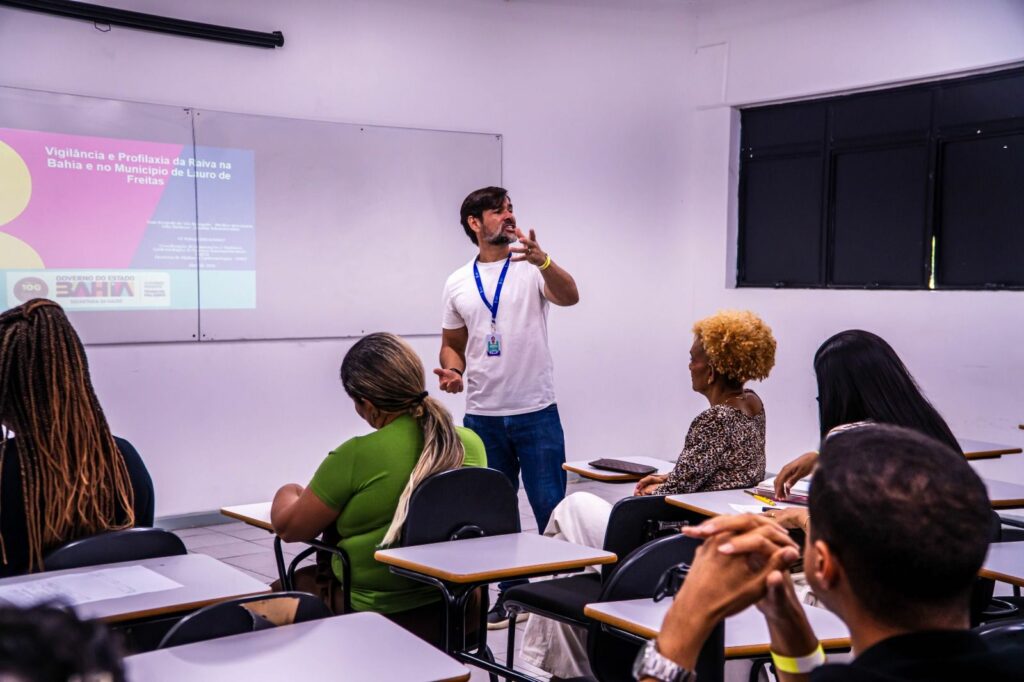 Com o objetivo de capacitar continuamente os profissionais de saúde e garantir um atendimento de qualidade à população, a Prefeitura de Lauro de Freitas, por meio da Secretaria Municipal de Saúde (SESA), realizou, nesta terça-feira (14/4), uma capacita-ção em profilaxia da raiva humana. formação foi destinada a enfermeiros, técnicos de enfermagem e médicos que atuam nas salas de vacina e em unidades de urgência, como o Pronto Atendimento (PA) Nelson Barros e a Unidade de Pronto Atendimento (UPA) de Itinga.