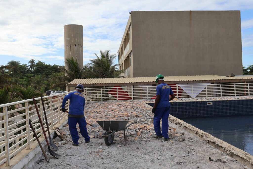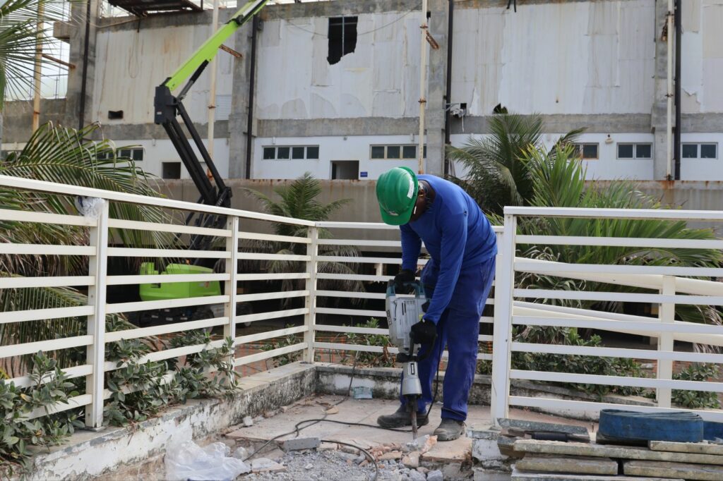 De acordo com o engenheiro civil Thiago Senna, responsável técnico pela obra, a fase atual concentra-se na substituição de elementos estruturais comprometidos pela ação do salitre. “Após a conclusão do serviço de limpeza geral da área e da remoção de equipamentos danificados, estamos realizando a substituição das peças oxidadas da estrutura do prédio destinado ao ginásio”, explicou.