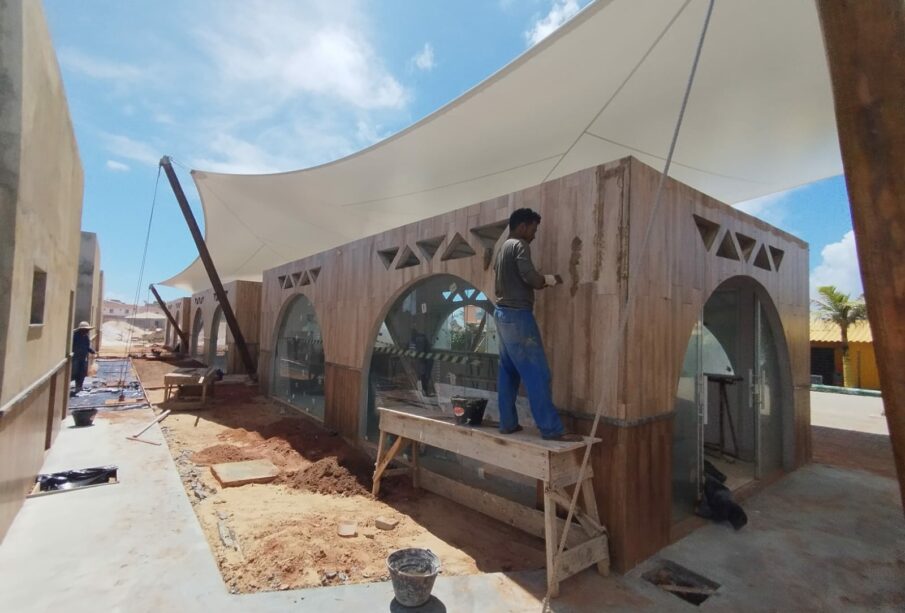 A Prefeitura de Lauro de Freitas segue avançando com as obras de requalificação e urbanização da nova Orla de Ipitanga, por meio da Secretaria Municipal de Infraestrutura e Serviços Públicos. O projeto já apresenta importantes etapas em andamento, com destaque para a instalação da cobertura em lona tensionada nas barracas, além do avanço nos acabamentos internos dessas estruturas.